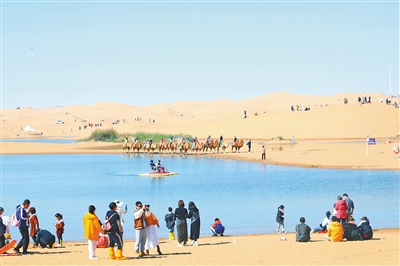 乌海湖的形成为发展旅游业提供了重要支撑。结合乌海湖景区大湖、大漠的资源优势,乌海市组建乌海文旅集团,开发了水上环湖观光游、沙海体验游、小火车观光游等旅游路线,并拓展了游艇、快艇、水上飞人、沙漠越野车、沙漠骆驼等20余种水上沙漠娱乐项目。自此“来沙漠看海”成为乌海市最为响亮的旅游标语。