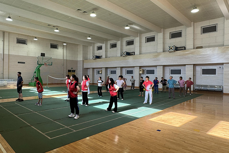 石城镇中心小学安置点由密云区体育局定点支援防汛救灾工作,在搬运物资、照顾群众之余,他们发挥工作优势,带领群众练习“八段锦”,通过“调身、调息、调心”三调合一的锻炼方式,帮助安置点的老年人改善健康状态。