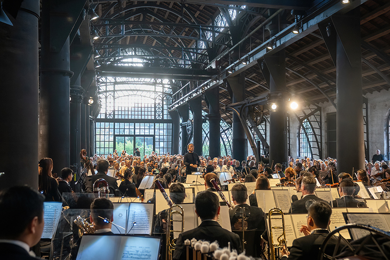 科布伦茨的赛纳冶炼厂铸造大厅是一处工业遗址,并不是常规的音乐厅。当日阳光高照,气温高达36摄氏度,这对音乐家们表演是个不小的挑战。国家大剧院管弦乐团总经理任小珑认为,这是欧洲夏季音乐节的常态,乐团走到这里,算得上是深入了欧洲音乐生活的腹地。曲终之时,所有观众起立鼓掌的场景,也给乐手们留下了难忘的记忆。
