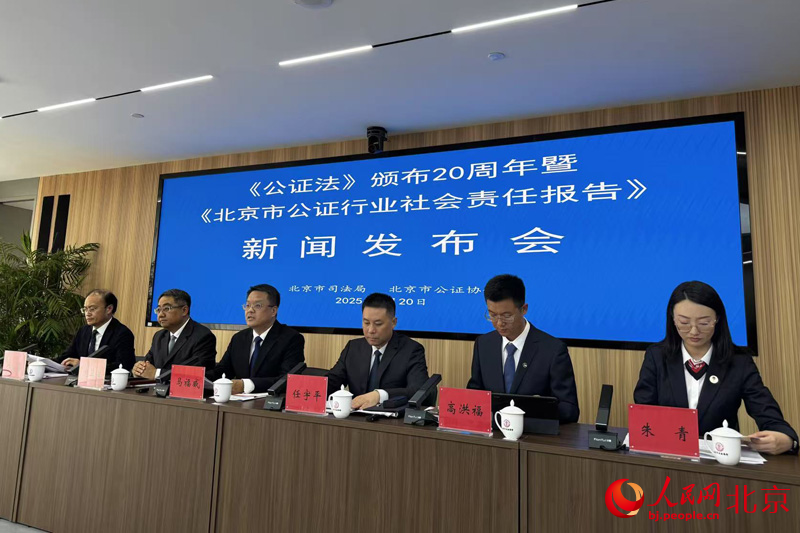 人民网北京8月21日电 (记者鲍聪颖)8月20日,北京市司法局召开公证法颁布20周年新闻发布会。 会上,《北京市公证行业社会责任报告(2005-2025)》正式对外发布,该报告从党建、经济、民生、法治等六个方面全面展现了北京市公证行业二十年来的责任实践。记者获悉,自2005年公证法颁布以来,北京市公证机构共办理公证事项1400余万件,其中,国内公证事项793万余件,涉外公证事项597万余件,涉港澳台公证事项10余万件。