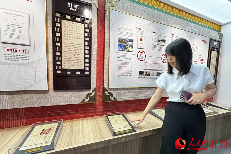 工作人员介绍北京市公证行业二十年来发展历程。人民网记者 鲍聪颖摄