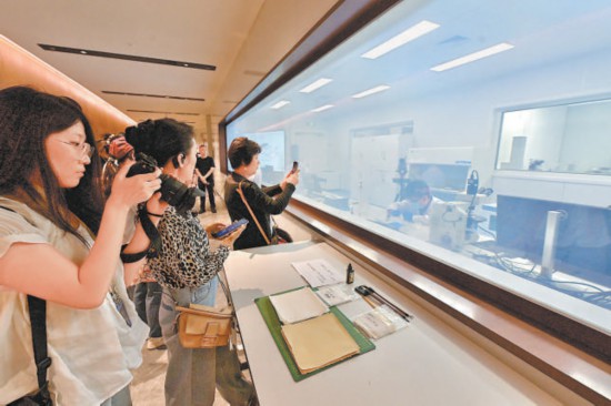 首博保护部副主任傅萌介绍,作为本市规模最大的可视化文物保护中心,北京大运河博物馆文物保护中心创新开设了具有展示功能的综合修复室,通过全景展示文物保护工作区、现场多感官互动体验等方式,带领观众探寻文物保护的奥秘,感受文保专家“匠心守护”的过程。