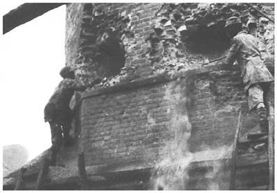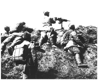 图为百团大战中攻破河北涞源东团堡后欢呼胜利的八路军战士。