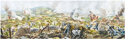 百团大战纪念馆内还原的“鏖战狮脑山”场景。 |
