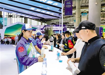 8月28日,中蒙博览会现场,志愿者在咨询台为参展民众提供服务。据了解,此次参加中蒙博览会的320名青年志愿者经过专业培训,在博览会上发挥自己的作用,成为了一道独特的风景。记者 潘佳慧摄