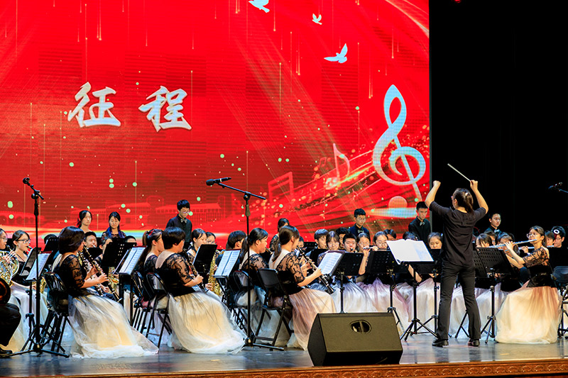 展演现场,丰台二中金帆管乐团以一曲激昂的管乐合奏《征程》拉开演出序幕,铿锵的节奏,瞬间将观众带回到那段波澜壮阔的抗战岁月。紧接着《地道战情景》登场,气势磅礴的女声合唱,勾勒出冀中平原敌后的民兵和老百姓军民同心抗敌的英雄画卷。男声重唱《弹起我心爱的土琵琶》《游击队歌》等经典歌曲联唱,将不同战场的战歌在同一舞台共振,以其经典旋律唤起对烽火岁月的深切回忆。