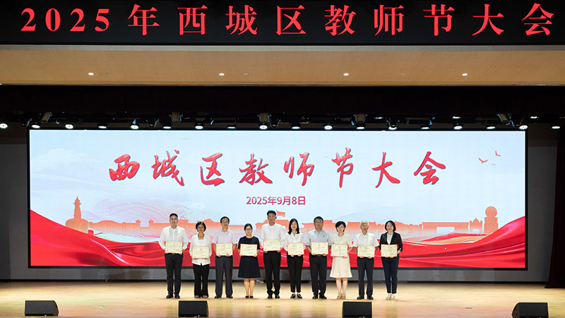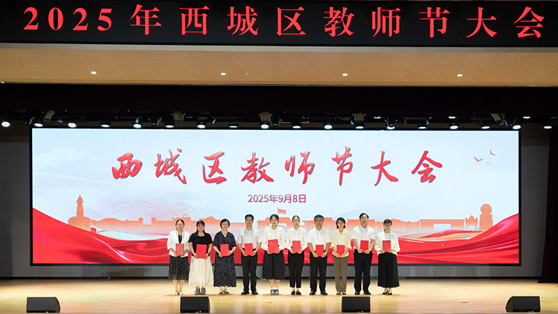 人民网北京9月9日电(记者鲍聪颖)9月8日,在第41个教师节来临之际,西城区以“勇担教育强国使命,谱就立德树人新篇”为主题召开庆祝教师节大会,向全区所有在教育战线上默默耕耘、辛勤培育下一代的教师及教育工作者致以崇高敬意。