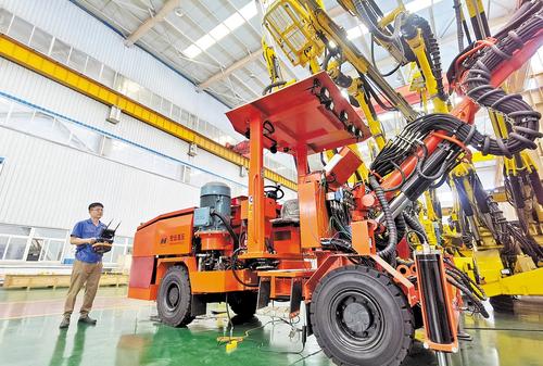 9月15日,河北宏远液压机械有限公司装配车间内,技术人员对智能掘进钻车进行出厂前调试。本报记者 陈正摄