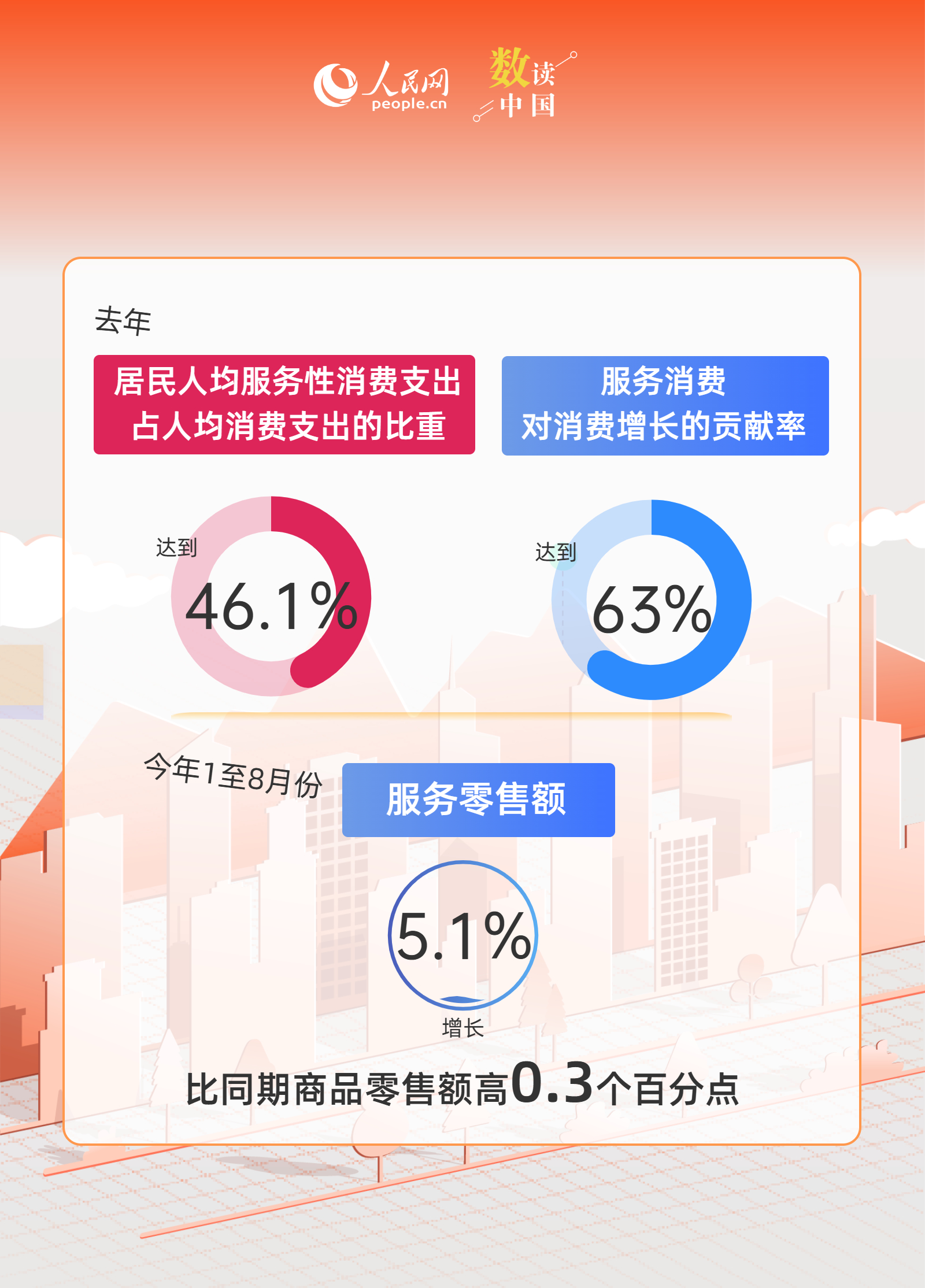去年8月,国务院发布了《关于促进服务消费高质量发展的意见》,对服务消费发展作出系统、全面部署。近日,商务部等9部门联合印发《关于扩大服务消费的若干政策措施》。一批“含金量高”的支持政策陆续出台,推动服务消费重点领域快速发展和潜力释放。6组数据,带你看扩大服务消费进展成效。