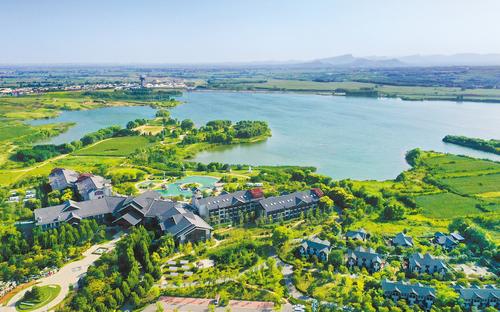 9月9日,无人机拍摄的位于内丘县扁鹊文化康养度假区内的扁鹊湖。本报记者 赵永辉摄