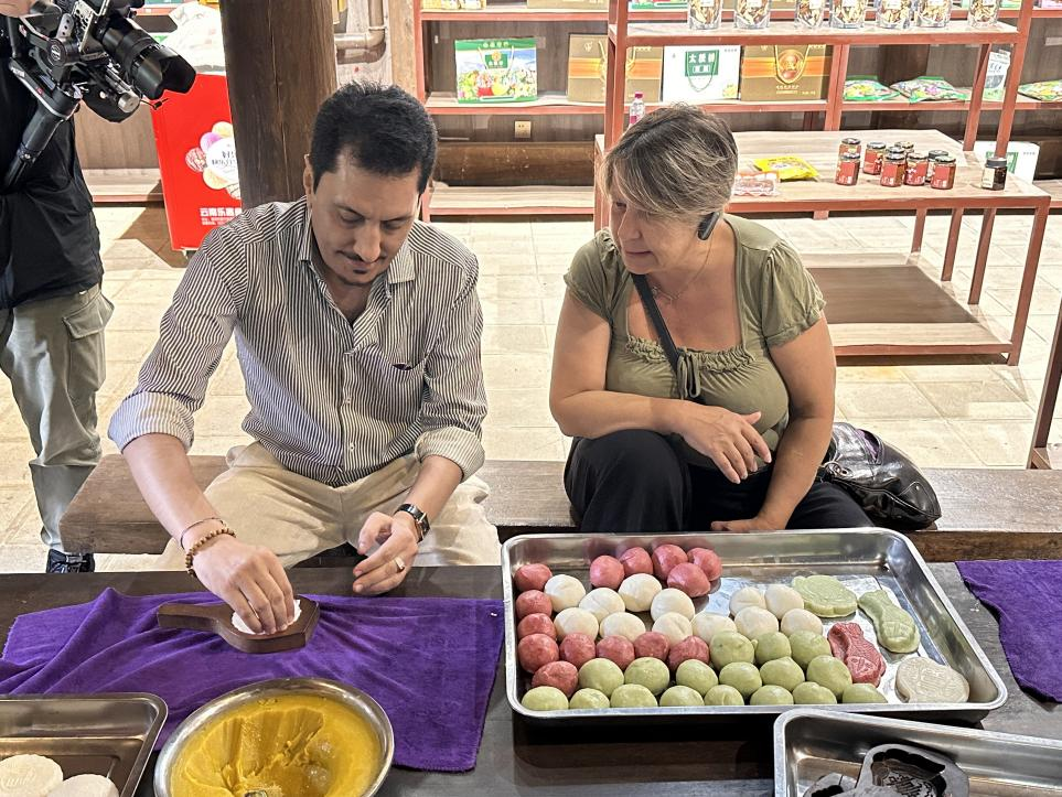 体验了制作工序后,费萨尔·马利克兴奋地说:“这是我第一次见到这样的制作工艺,让我感到非常惊讶!做好的大米粑粑再加上一款口味独特的辣酱,味道非常值得尝试。”