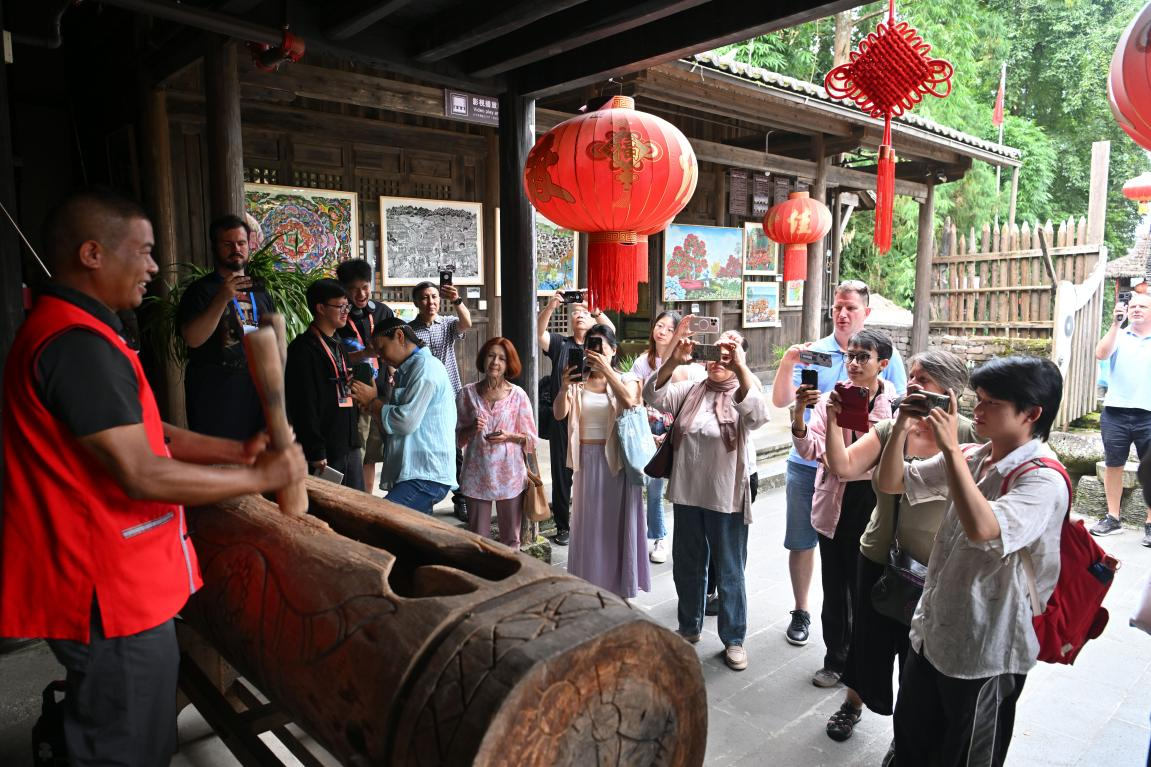 木杵砸进石臼,蒸熟的米粒在一次次撞击中从散粒变成团块,最终化作光滑绵韧的米团。在云南腾冲司莫拉佤族村,《巴基斯坦观察家报》董事长兼总编辑费萨尔·马利克踏在结实的舂杵上体验制作大米粑粑,脸上掩不住好奇与欣喜。