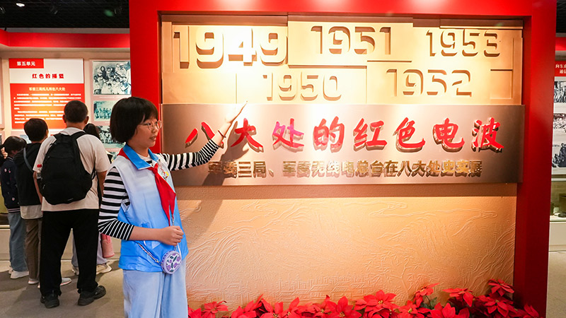 据介绍,国庆黄金周期间,市民游客可现场拓印金色“福”字,体验传统技艺。带娃出行的家长,不妨锁定八大处红色电波展室——这里藏着亲子游的“独家密码”。市民可与孩子一同坐在老式发报机前,亲手破译密电码,还能敲击按键发送“祝福祖国”的电波,完成体验后可领取限量版红色语录帆布包。
