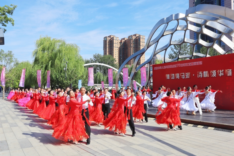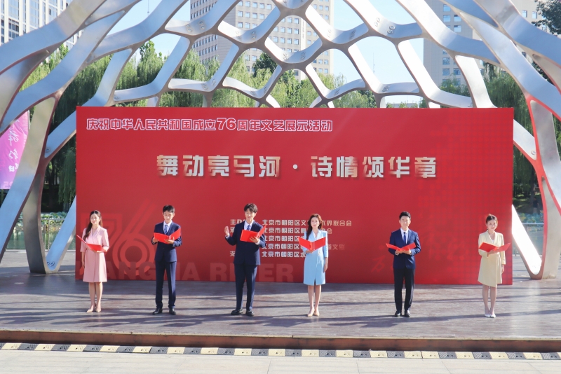 在国庆佳节即将来临之际,9月29日下午,由朝阳区文联主办的“舞动亮马河·诗情颂华章”庆祝中华人民共和国成立76周年文艺展示活动在亮马河畔友谊广场举行。