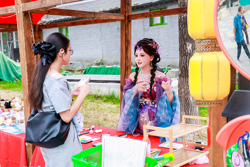 当传统邂逅潮流,长辛店街区迸发出独特魅力。10月1日,汉服巡游队伍如流动画卷穿梭街巷:侠客少年执剑而立,游客纷纷加入合影,浓烈的国潮氛围席卷全场。汉服NPC与游客对诗、投壶、射箭赢取“银票”,兑换非遗手作或参与传统游戏,互动感拉满。
