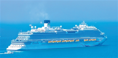 首艘国产大型邮轮“爱达·魔都号”驶向山东青岛邮轮母港。 |