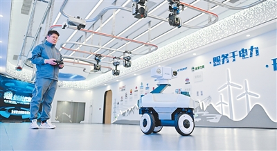 在河北雄安新区雄安科创中心中试基地,一家科技企业的工作人员在调试巡检机器人。 |