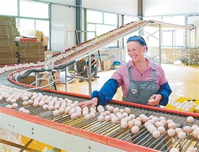 贵州省晴隆县,东西部协作项目资金支持的一家蛋鸡养殖场内,工人在分拣鸡蛋。 |