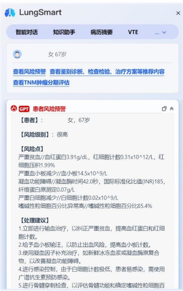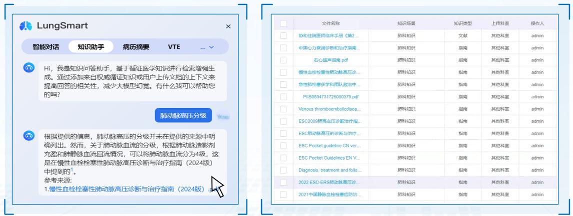 “此次定制LungSmart大模型智能应用,初衷是针对性解决肺科专科诊疗中的实际痛点,让智能化真正贴合临床需求。”卫宁健康总架构师周洪介绍,系统融合了DeepSeek与医疗领域大模型WiNGPT双人工智能模型,以医院肺科专病数据语料为基础,通过“预训练-专科精调”模式,已构建智能问答、风险提醒、知识助手、辅助决策、病历摘要、病历质控、VTE预警等20多个应用场景,集成超1.5万种药品信息、百万级医学知识库及最新诊疗指南,借助“智能搜索引擎”生成涵盖发病机制、治疗方案、循证依据的全链条建议,让临床决策“有根有据”,推动肺科疾病诊疗全链条的提效、精准与创新。