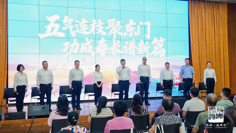 8月26日下午,丰台区成寿寺街道举办“五气连枝聚东门,功成寿长谱新篇”向群众报告工作会议。