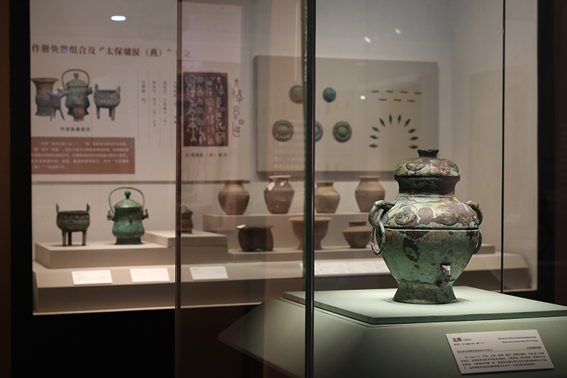 徜徉展厅,迄今北京地区出土青铜器中形体最大、重量最重的堇鼎巍然矗立,与代表燕国青铜铸造工艺最高水平、国内首批195件禁止出境展出文物之一的牛头纹带盖伯矩鬲,共显“鼎天鬲地”的庄严气度;记载着西周封燕史实的克盉、克罍,静静散发周礼幽光;更有三件铸有“太保墉燕”铭文的作册奂器(鼎、卣、觯)首次联展,5处铭文如青铜史书,以无可争议的文字资料实证了北京3000余年建城史。