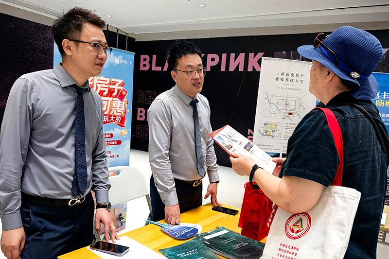 本季推介会选址南中轴核心区域,紧邻南三环主干道,地铁8号线“海户屯”站出站即达,交通便利。京东MALL作为集购物、休闲于一体的大型综合体,商业配套成熟,人流辐射广泛。另外,推介会还与丰台区政务服务中心协同联动,通过宣传信息展示等方式,将活动资讯精准传递至有置业需求的市民,进一步扩大了活动影响力。记者看到,活动现场人头攒动,不少市民在逛街、办事的同时顺路逛逛推介会,实现资源高效链接与人气集聚,进一步扩大活动影响力。