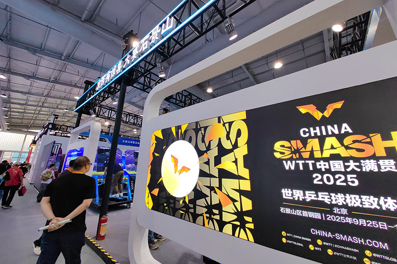 展台以展示石景山区“国家体育消费和赛事经济试点”成果为主线,内设四大功能区,包括WTT中国大满贯赛事宣传展示区,通过特许商品展示、展板、视频等方式对2025年WTT中国大满贯进行宣传,同步设置VR乒乓球体验装置;石景山冰雪互动区通过VR模拟设备进行滑雪场景复刻,同步宣传大跳台消费场景改造、区内各类冰雪赛事等;石景山招商推介展示区集中展示石景山区经济社会环境概况、支持政策、重点赛事和场馆载体等,打造招商引资集中展示空间;数智体育互动区设置AI动感单车及群众体验赛事,同步展示数智体育公开赛等赛事活动、重点相关企业简介等。