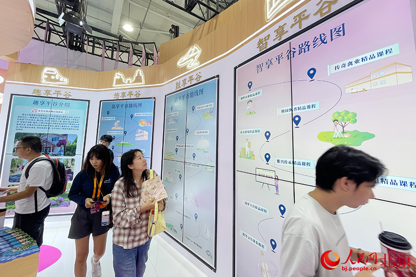 人民网北京9月12日电 (记者尹星云)2025年服贸会正在北京首钢园举办,平谷区以“首都桃花源 世界休闲谷”为主题,亮相文旅服务专题展区。展览展销、游购打卡、非遗演绎、招商推介……平谷通过多维度展示与互动,向大家展示“高大尚”平谷城市形象与文商旅体的深度融合。