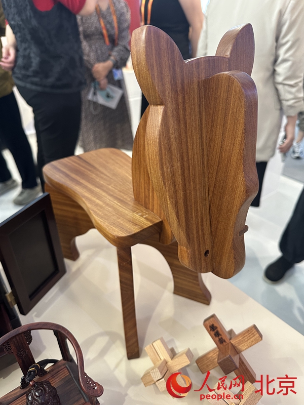为马年推出的“榫卯小木马凳”。 人民网记者 池梦蕊摄