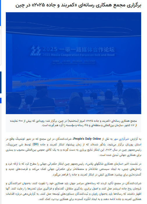 伊朗迈赫尔通讯社报道2025“一带一路”媒体合作论坛