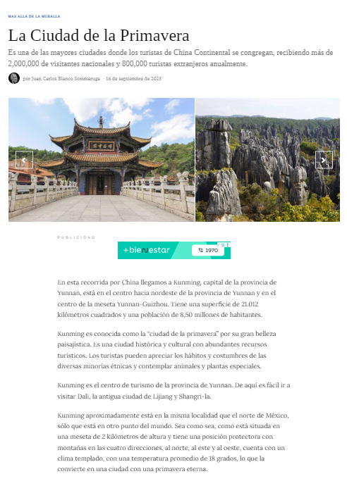 乌拉圭《R日报》9月16日刊发《春之城》的文章,报道作为一座历史文化名城和云南的旅游枢纽,昆明不仅拥有丰富的少数民族风情和独特的动植物资源,还可便捷通往大理、丽江、香格里拉等热门目的地。