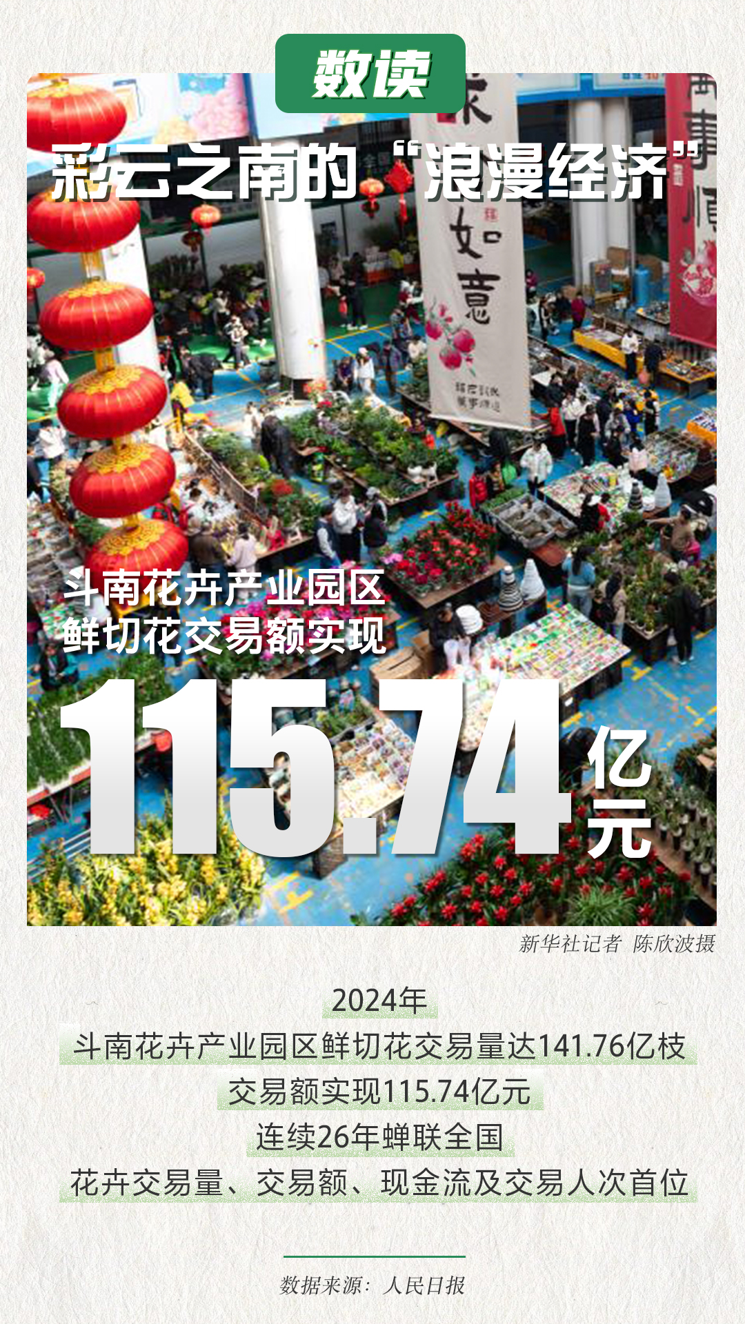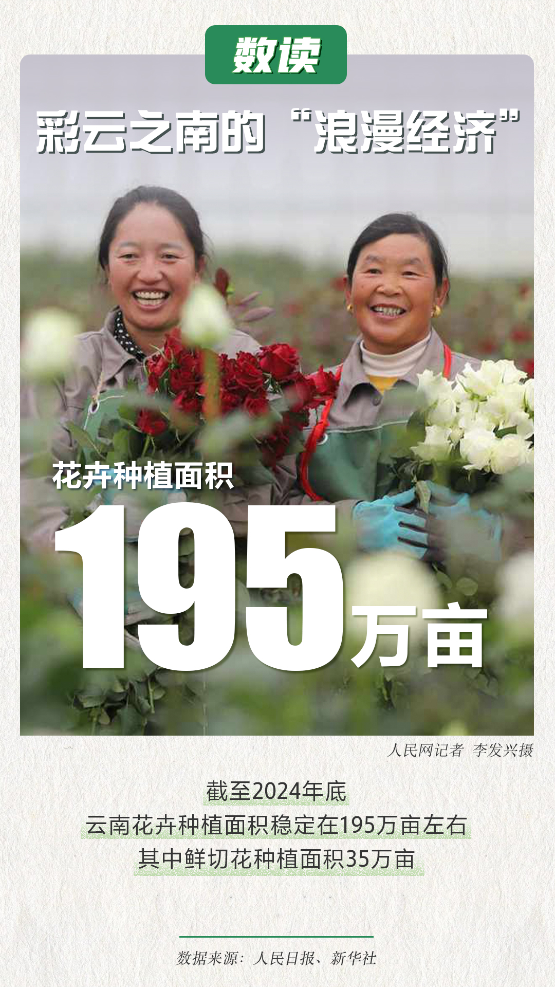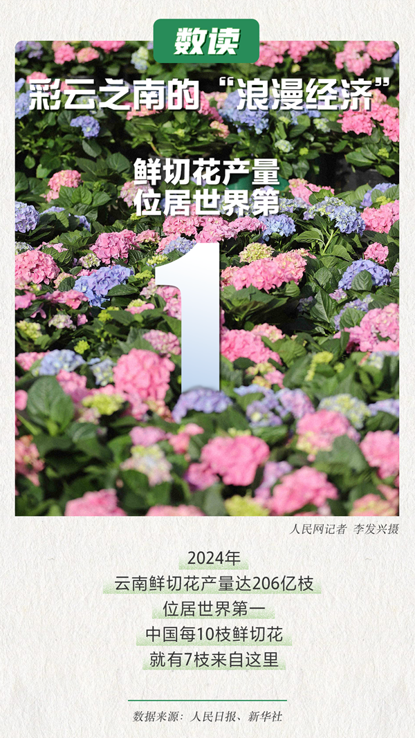 位于低纬度、高海拔地区的云南,气候温和、日照充足、雨量充沛,是全球最适宜花卉生产的地区之一。近年来,云南鲜花经济蓬勃发展,在乡村全面振兴、高质量发展的道路上书写下一桩桩“花田喜事”。一组海报带你“数读”彩云之南的“浪漫经济”。