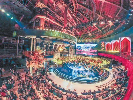19时30分,西山脚下、永定河畔,首钢园三高炉披上绚丽光影,一场多元跨界的沉浸式音乐会拉开序幕。音乐会以“山河永定·家国长安”为总纲,分为“红色追忆”与“多彩未来”上下两篇,用旋律串联起民族精神的传承与时代发展的脉动。