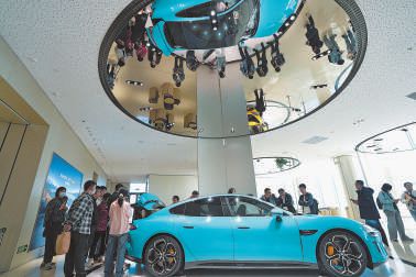 小米汽车工厂吸引众多市民参观体验。本报记者 和冠欣摄