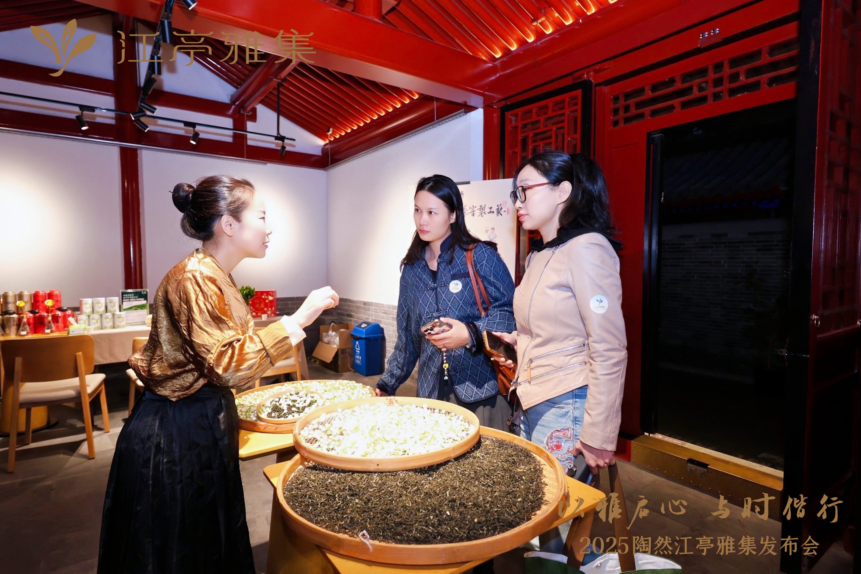 活动突破传统线下模式,借助数字技术实现文化传播升级:故宫博物院第六任院长单霁翔通过视频寄语,远程分享文化遗产保护与活化见解,让优质文化资源突破空间限制触达现场;江亭雅集LOGO发布环节,品牌设计师贺冰淞以视频形式解析设计理念,将三尾游鱼象征的“悠游万象”、古琴曲《猗兰操》蕴含的“幽兰之姿”等抽象内涵,通过可视化画面直观呈现,让传统文化符号更易被理解与感知。