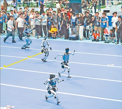 图为机器人在开幕式上开展100米赛跑。新华社记者 谢 晗摄