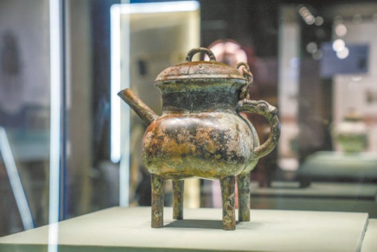 首次集中展出的三件作册奂器(作册奂鼎、作册奂卣、作册奂觯)。本报记者 武亦彬摄