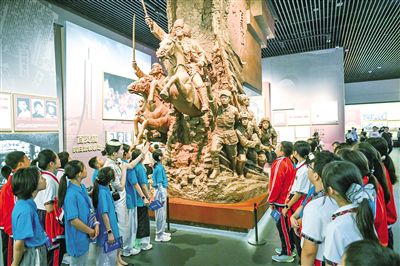 8月20日,小学生们在“解放之路——内蒙古革命史陈列展厅”参观展览。当日,由自治区教育厅主办的“基地学子赴首府 筑梦航天未来行”研学活动在内蒙古博物院举行,来自阿拉善盟的15名学生与首府地区15名学生结对,共同开启一场跨越地域的知识探索与情感联结之旅。记者 王磊摄