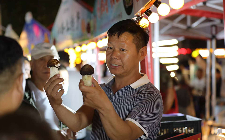 滨河路夜市现场,农户正在推销土特产。围场满族蒙古族自治县融媒体中心供图