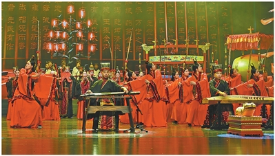 山东代表队演员表演器乐合奏《盛世雅乐·宣平之章》。