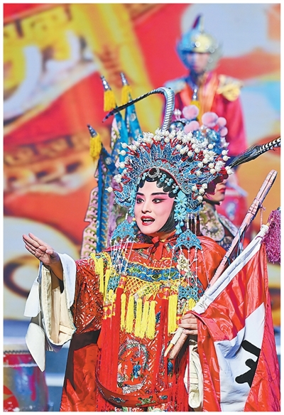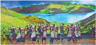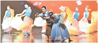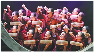山西代表队演员表演群舞《蒸蒸喜乐》。