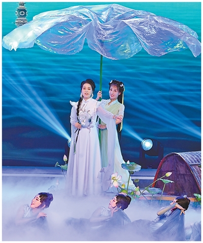 来自河北、安徽、海南、重庆4个代表队的演员表演歌曲《灯火里的中国》。