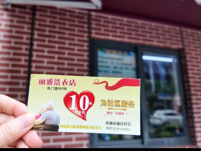 今年,丽雅洗衣店更是在五里桥街道的牵头下加入了养联卡使用点的行列,用实实在在的优惠为更多社区老人送上关爱,向持卡到丽雅洗衣店消费的老人提供折扣福利。洗衣店的窗口增添了一抹温暖的橙黄色,许多居民闻讯赶来,洗衣店的人气进一步高涨。