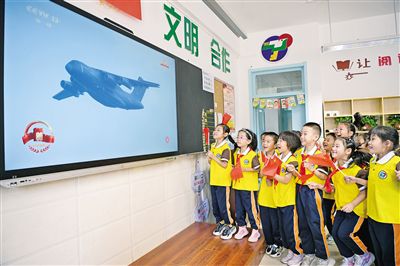 9月3日上午,呼和浩特市赛罕区东风路小学学生在观看纪念中国人民抗日战争暨世界反法西斯战争胜利80周年大会。当日该校组织师生观看了直播盛况,当看到中国人民解放军仪仗方队、徒步方队、陆上作战群方队、远程火炮方队等方队接受检阅时,学生们高喊“祖国万岁”,以此表达民族自豪感和爱国情怀。记者 孟和朝鲁摄