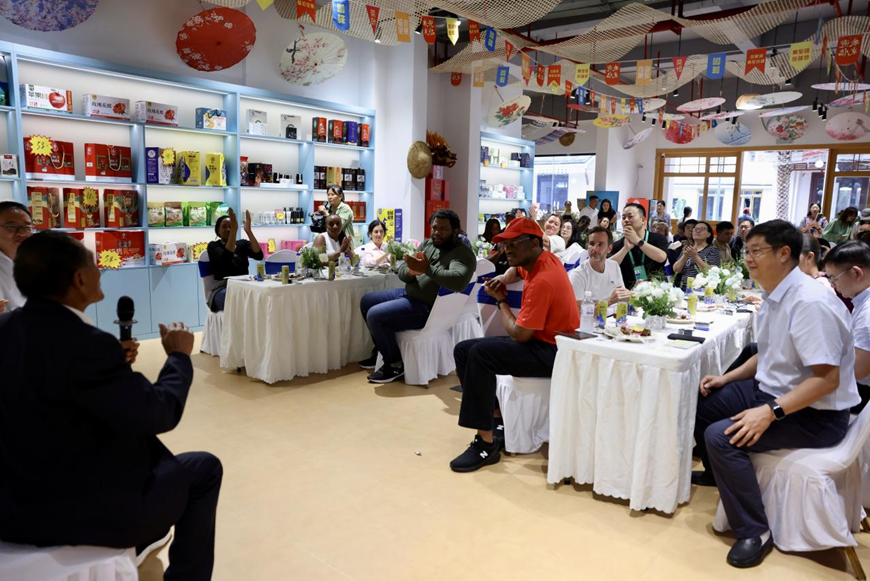 “临沧坚果”故事会主题沙龙现场,中外媒体嘉宾聆听临沧坚果产业发展故事。蒋雨师摄