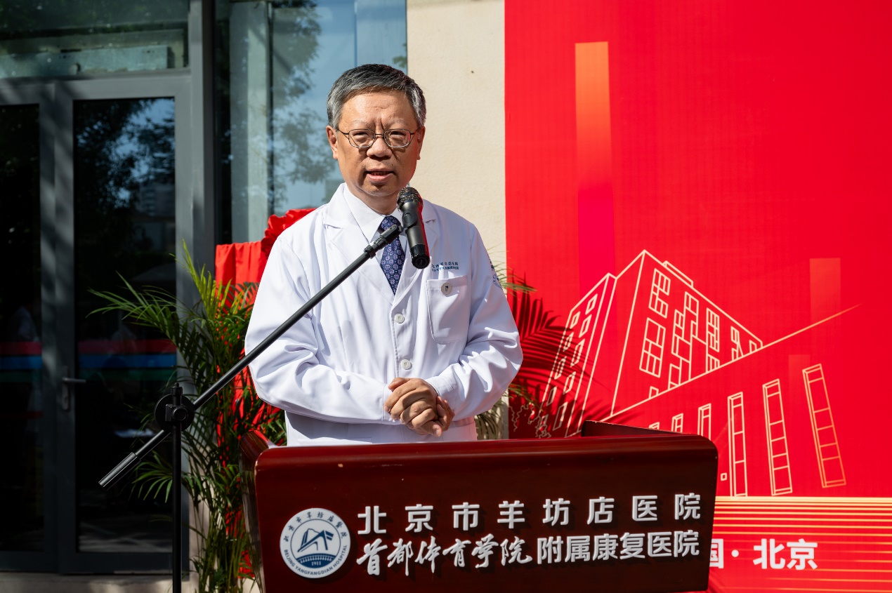 揭牌仪式上,首都体育学院党委书记杨海滨从科学研究、人才培养、社会服务等角度阐述了首都体育学院与北京市羊坊店医院共建首都体育学院附属康复医院的重要意义。杨海滨表示,体医融合高水平团队建设和高质量研究成果产出亟须更多北京方案、中国方案,附属康复医院的建立,将为双方开展联合科学研究创造良好条件;将为更好地服务新时代首都发展,提高首都体育与医学人才培养质量提供强大助力;将为患者、亚健康人群以及运动爱好者提供更有效、更科学的精准服务,为健康中国建设贡献更大力量。