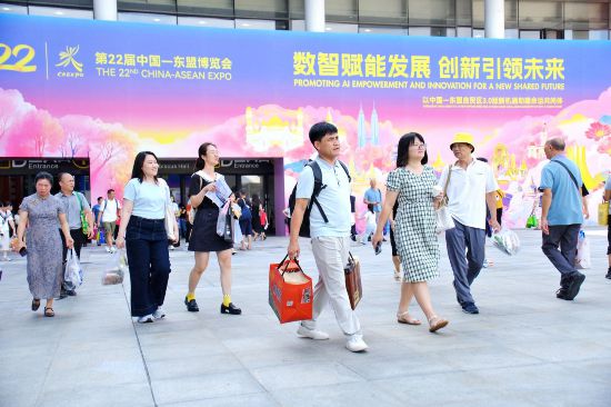 展会上,一群大学生的身影也格外引人注目,他们在学校的统一组织下开展东博会研学活动。“我是第一次参加东博会,感觉非常有趣,这里汇聚了中国与东盟各国的特色产品和科技发展成果,让我深切感受到人工智能的发展活力,同时加深了文化认知。”广西职业师范学院大一学生杨依宁说。(记者周小燕 朱新韬)