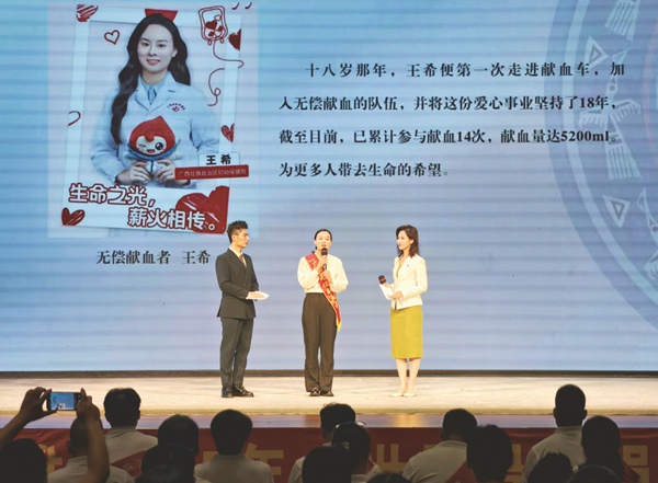 9月20日是第十一个世界骨髓捐献者日。9月19日晚,“致敬希望英雄”庆祝2025年“世界骨髓捐献者日”宣传活动在广西民族剧院举行。广西无偿献血者、非血缘造血干细胞捐献者和红十字“三献”志愿者代表等200多人参加活动。