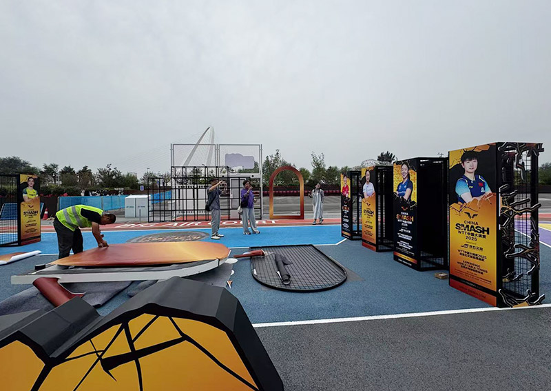 WTT大满贯公园设置各种互动区域与主题活动。图文工人作业中。人民网记者 鲍聪颖摄