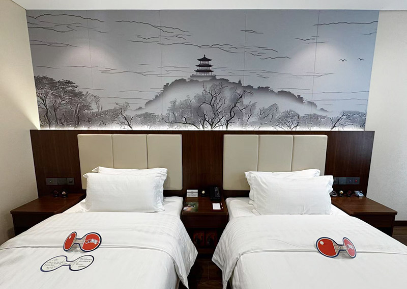 万商花园酒店的112间乒乓主题客房。人民网记者 鲍聪颖摄